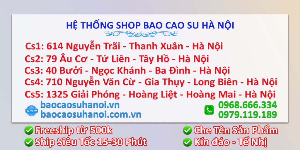 Địa chỉ các chi nhánh hệ thống shop Bao Cao Su Hà Nội
