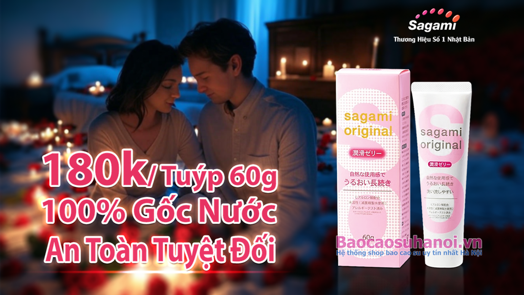 Gel bôi trơn Sagami Original (60g): Gốc nước, an toàn khi dùng với bao cao su Sagami. Giá: 120.000 VNĐ.
