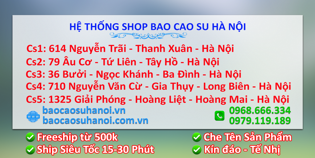 Địa chỉ các chi nhánh hệ thống shop bao caoc su Hà Nội