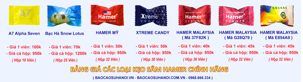 Bảng giá các loại kẹo sâm Hamer tăng cường sinh lý cho nam giới quý khách tham khảo thêm