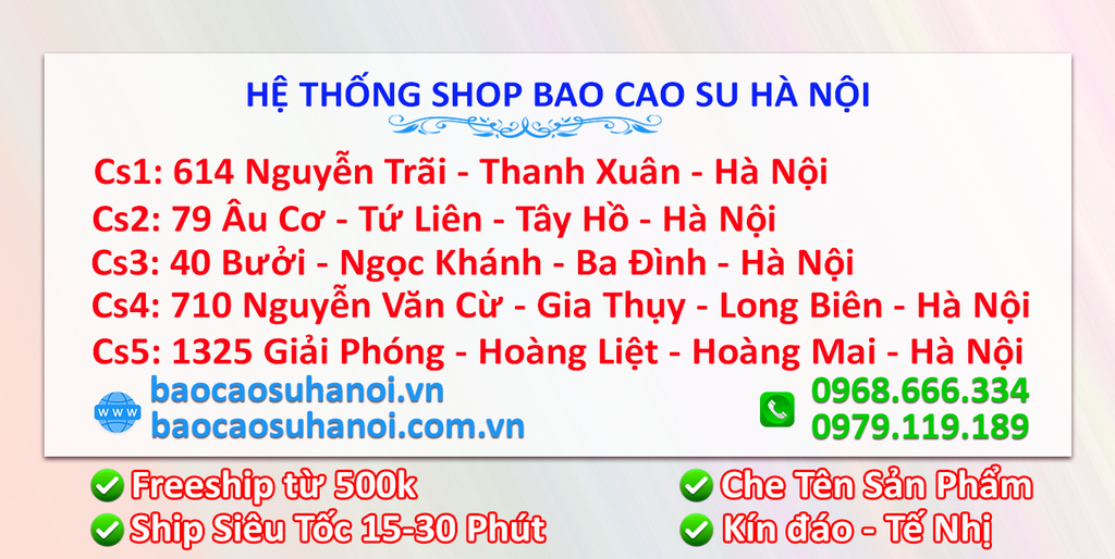 Địa chỉ các chi nhánh cửa hàng của hệ thống shop Bao Cao Su Hà Nội
