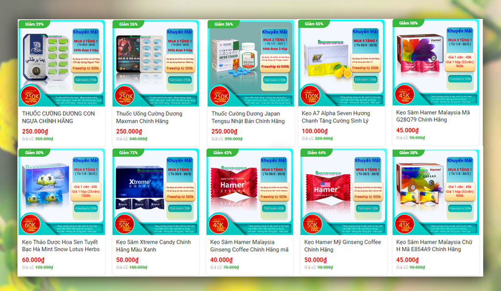 - Thuốc cường dương: thuốc cường dương ngựa thái 7000mg, thuốc cường dương Maxman 3800mg, thuốc cường dương Tengsu Japan hộp 16 viên, kẹo sâm Hamer Mỹ, kẹo sâm hamer malaysia 37F82K, kẹo sâm hamer G28Q79, kẹo sâm Hamer E854A9, kẹo sâm Xtreme Candy, kẹo A7 Alpha Seven...