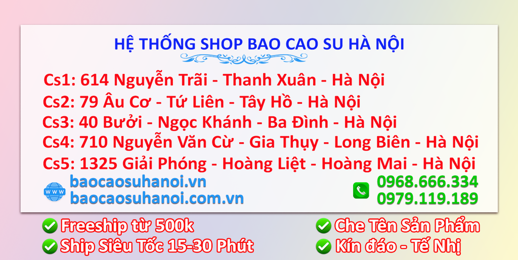 Địa chỉ các chi nhánh hệ thống shop Bao Cao Su Hà Nội