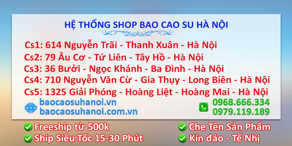 Địa chỉ các chi nhánh hệ thống shop bao cao su Hà Nội