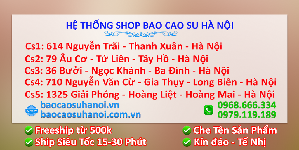 Địa chỉ các chi nhánh hệ thống shop bao cao su Hà Nội