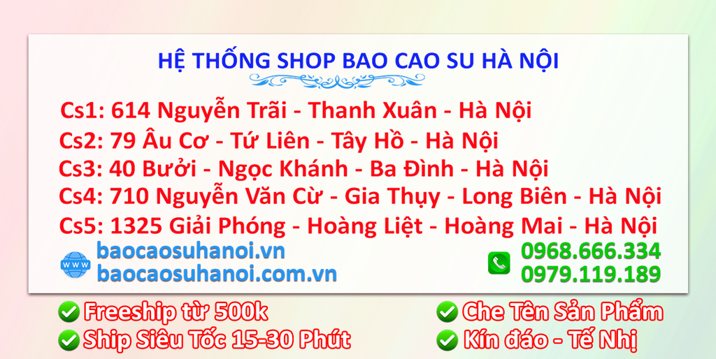 Địa chỉ các chi nhánh hệ thống shop Bao Cao Su Hà Nội