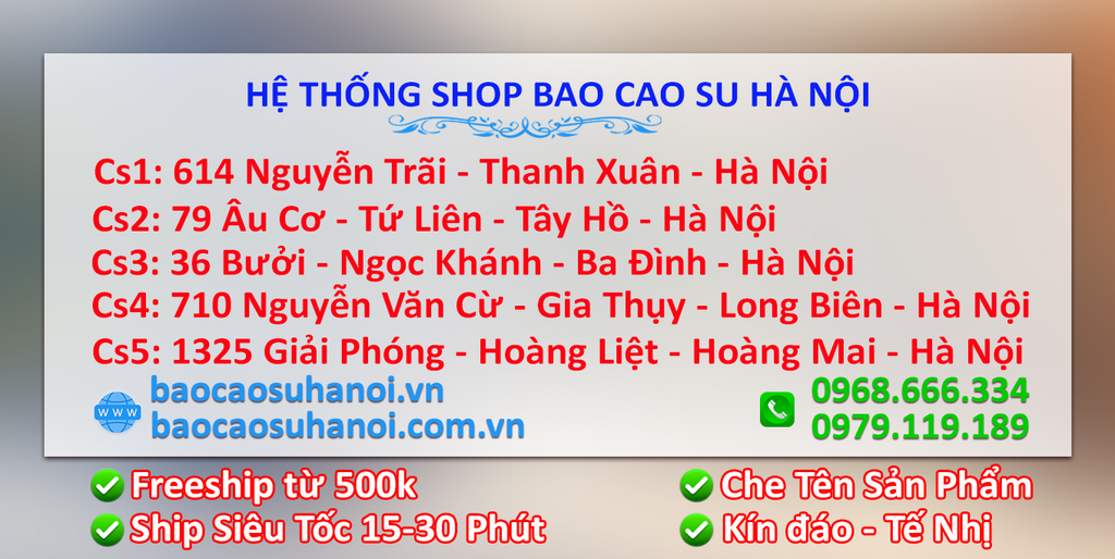 Địa chỉ các chi nhánh hệ thống shop bao cao su Hà Nội