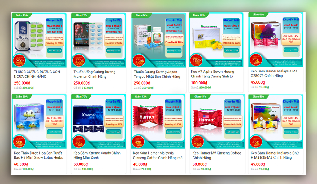 - Thuốc cường dương: thuốc cường dương ngựa thái 7000mg, thuốc cường dương Maxman 3800mg, thuốc cường dương Tengsu Japan hộp 16 viên, kẹo sâm Hamer Mỹ, kẹo sâm hamer malaysia 37F82K, kẹo sâm hamer G28Q79, kẹo sâm Hamer E854A9, kẹo sâm Xtreme Candy, kẹo A7 Alpha Seven...