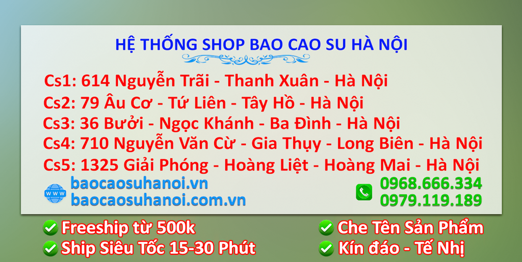 Địa chỉ các chi nhánh của hệ thống shop bao cao su Hà Nội