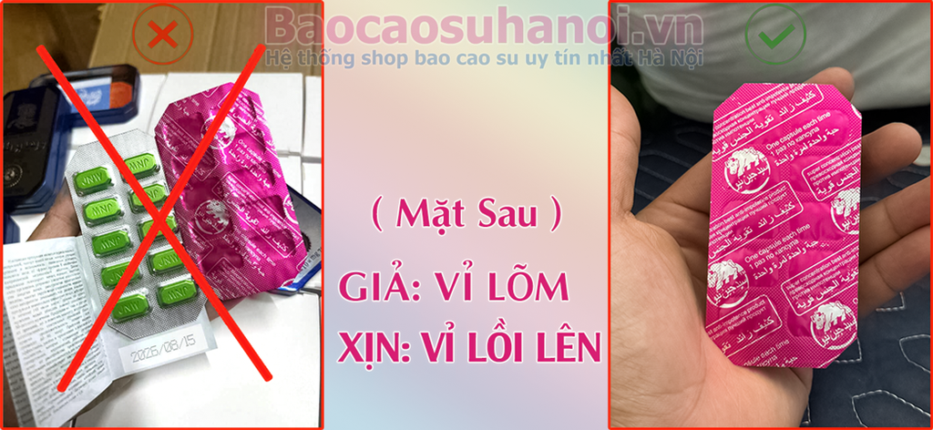 Hình ảnh phân biệt thật và giả ( nhìn mặt sau của vỉ thuốc )