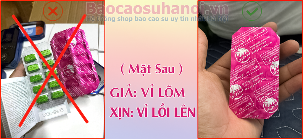 Nhìn mặt sau để phân biệt thuốc ngựa thái thật và giả ( hình trên )