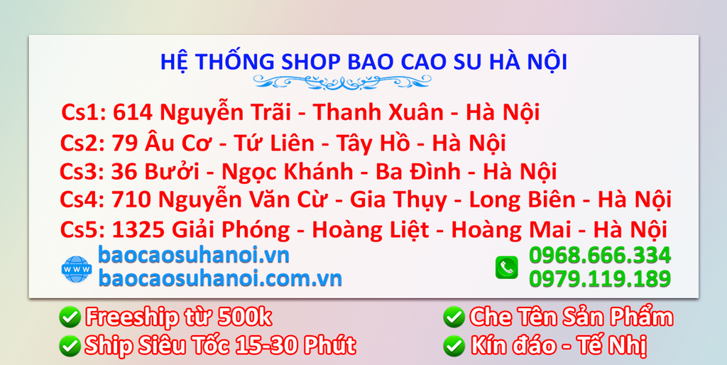 Địa chỉ các chi nhánh hệ thống shop bao cao su Hà Nội